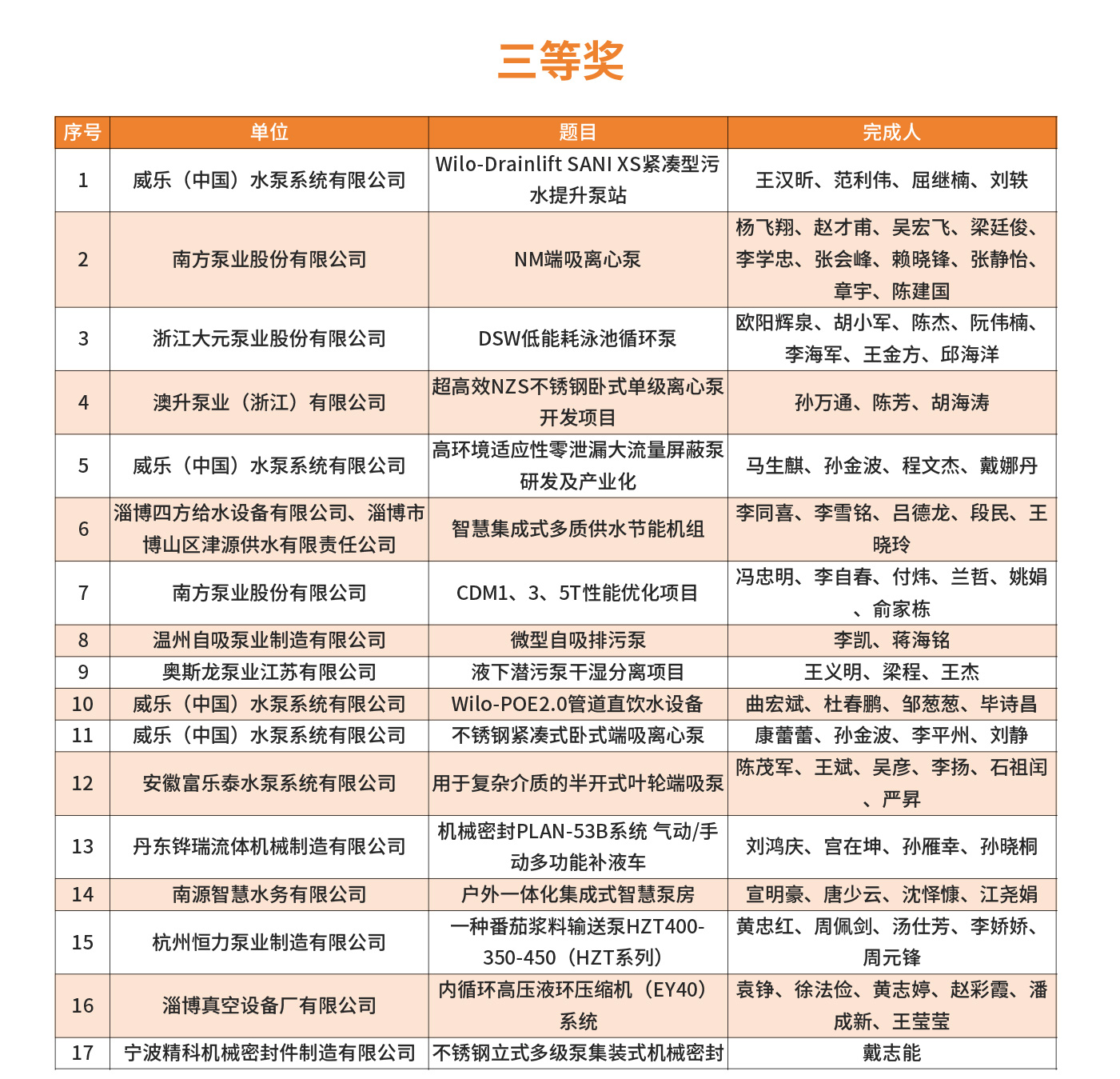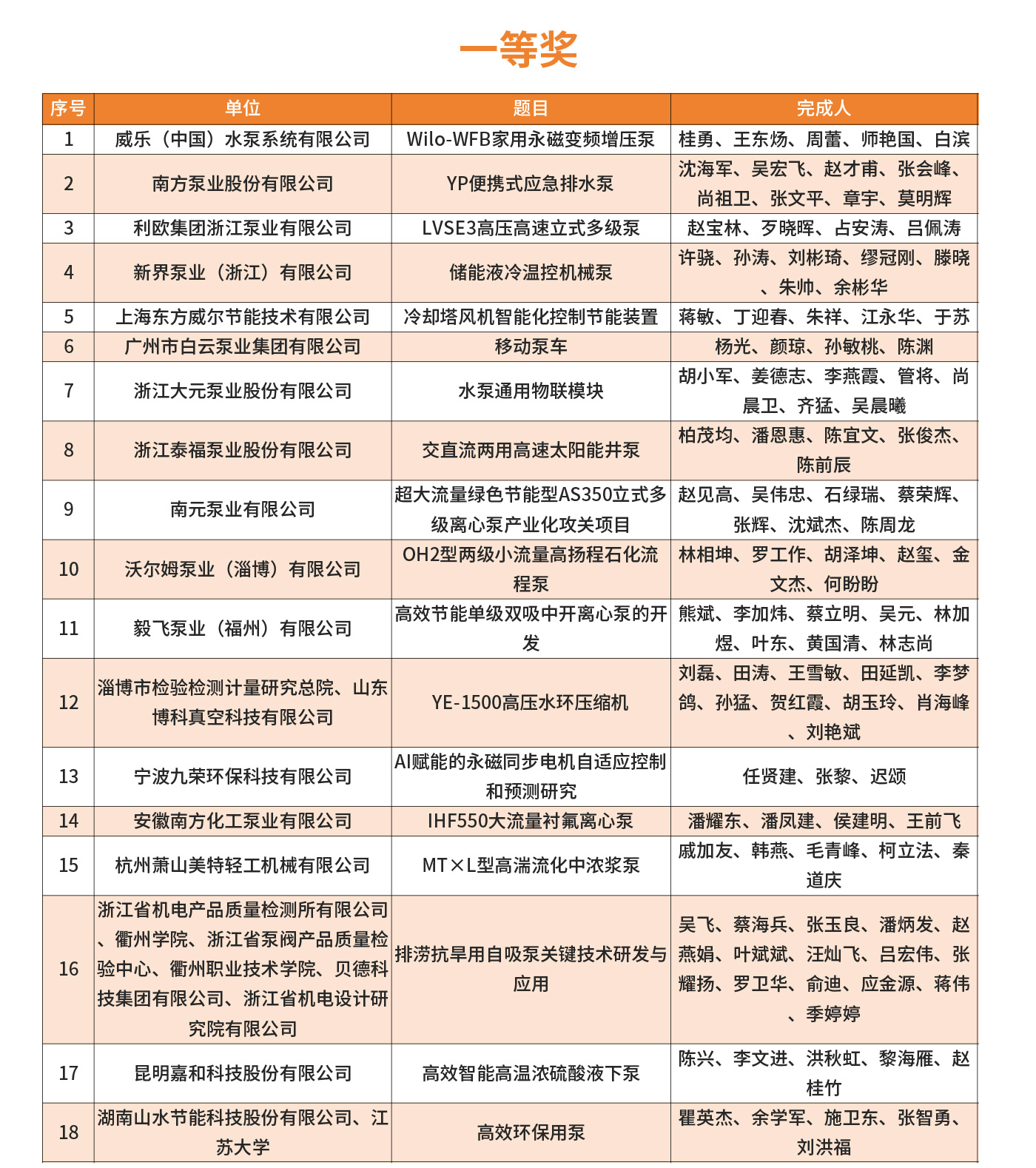 2025年第四屆FLOWTECH CHINA全國流體裝備技術創(chuàng)新獎經(jīng)過10位嘉賓的專業(yè)評審,共評選出了威樂、南方、利歐、新界、白云、沃爾姆、澳升等在內的一、二、三等獎,凱泉泵業(yè)王斌、南方泵業(yè)蘭哲、利歐集團顏土富等32位個人獎。