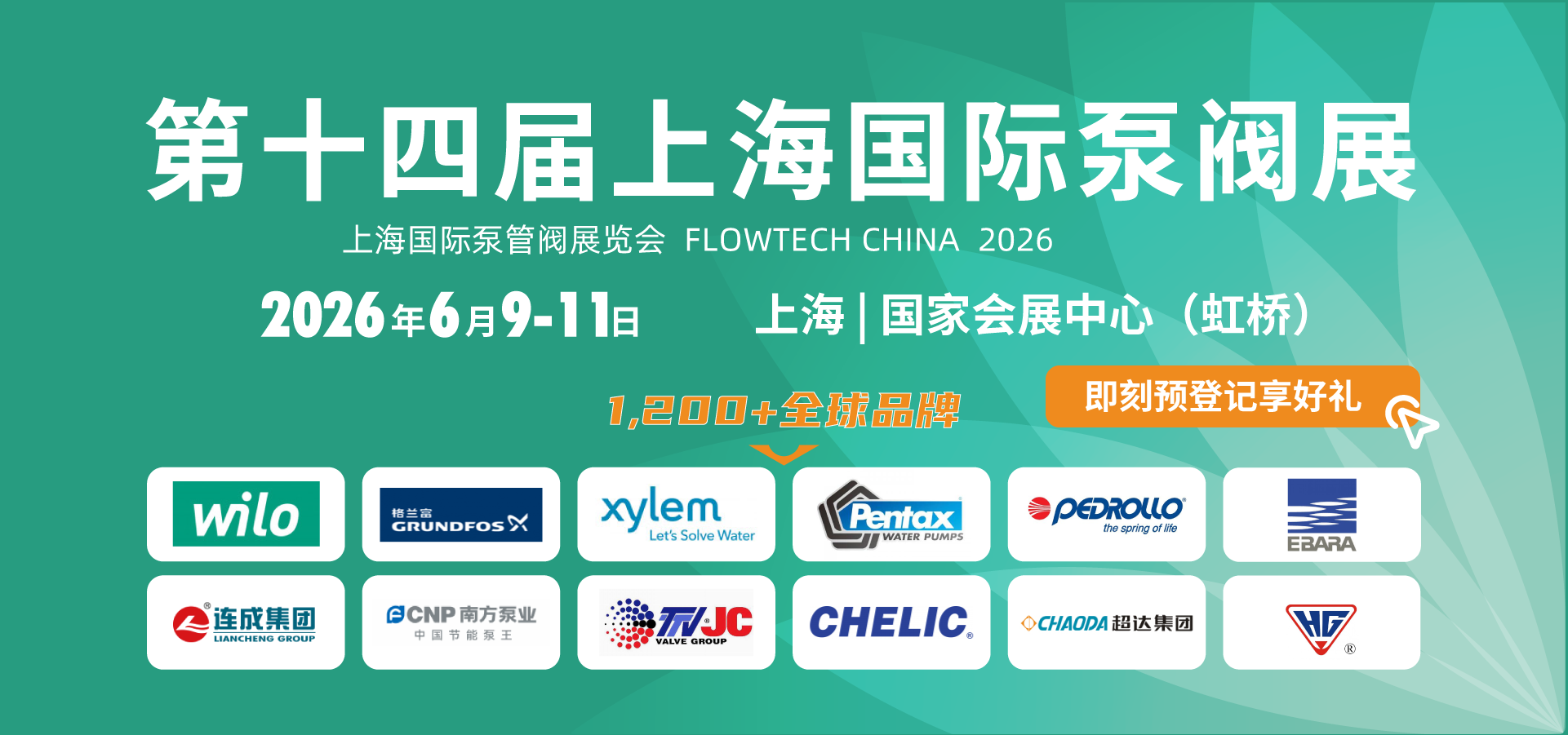 煥新升級!第十四屆上海國際泵閥展將于2026年6月9-11日在上海國家會展中心(虹橋)盛大啟幕,誠邀全球“泵閥人”共聚盛會。
